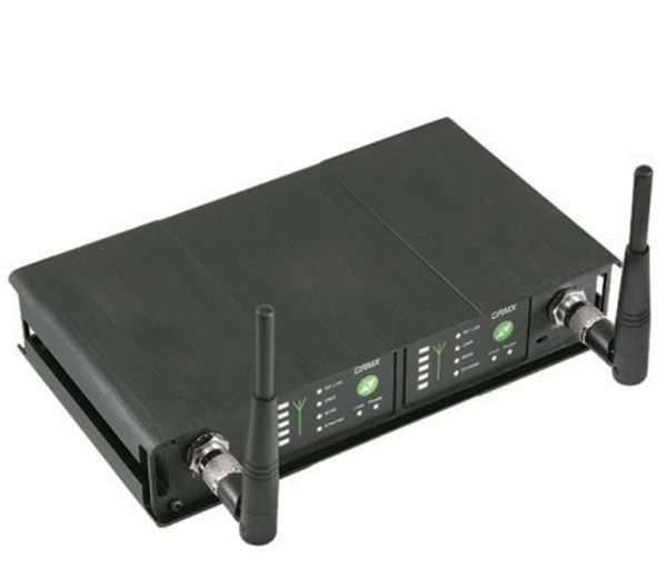 The wireless DMX transmitter attaches to the 27" Touchscreen Computer, sending commands wirelessly to the DMX receivers. The typical setup is one transmitter per stadium or arena.